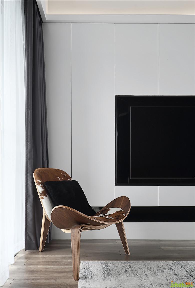 ▲柜門采用彈開器,并沒有外裝拉手,室內(nèi)設(shè)計師讓電視背景墻的完整和簡潔得到了最大程度的體現(xiàn)。