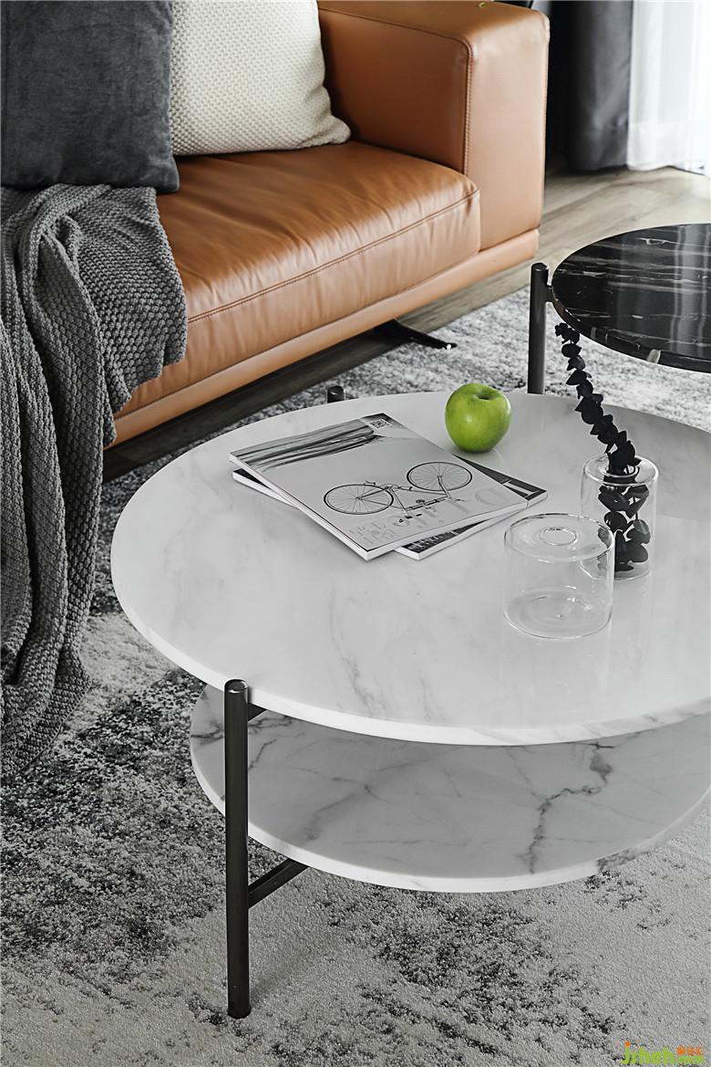 ▲皮毛與木質(zhì)結(jié)合的飛機(jī)椅,設(shè)計感十足的外形與原始?xì)庀⒌拿づ鲎玻羌揖咭彩呛芎玫难b飾。大理石和鐵架結(jié)合的茶幾,造型靈巧別致,顏色上是與電視背景墻呼應(yīng)的黑與白。