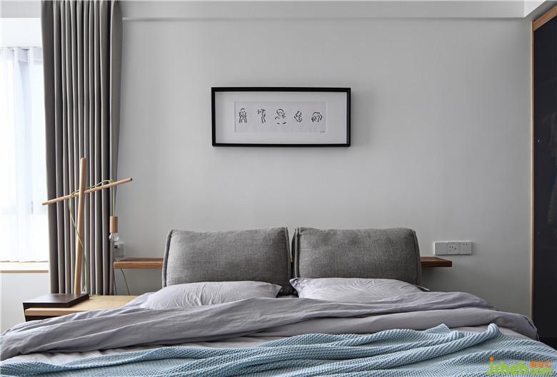 主臥是沒有距離感的素色,凝聚了古典的氣質但仍然是輕盈的。造型特別的床頭柜結合床頭吊燈的形式趣味盎然,灰色調的床品為空間注入源源不斷的溫柔氣質,業(yè)主自己畫的小畫掛在床頭,這就是有生活氣息的家。