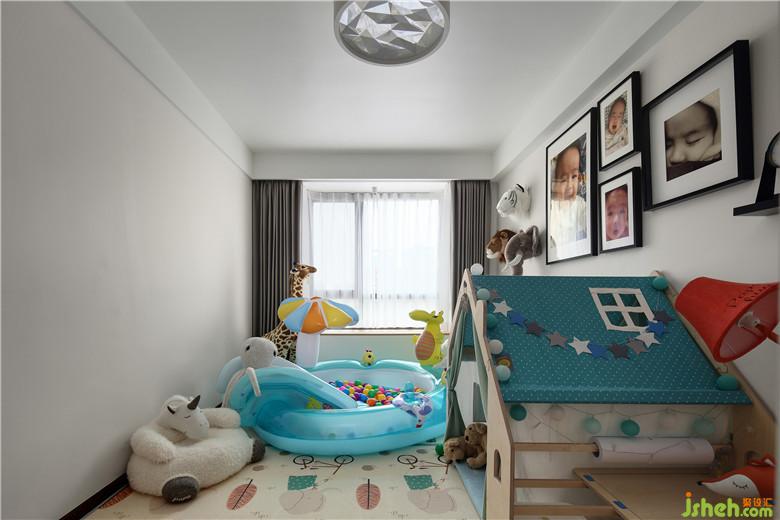 這樣的兒童房應該是每個人童年的夢,小小的童話中一樣的屋子,裝滿球的游泳池,角角落落有很多小動物,墻上掛著的是孩子的照片,孩提時候一定是幸福的!