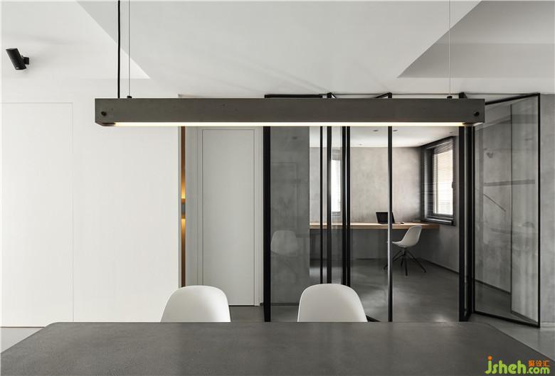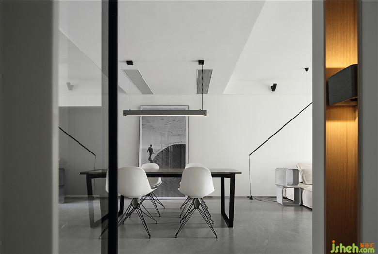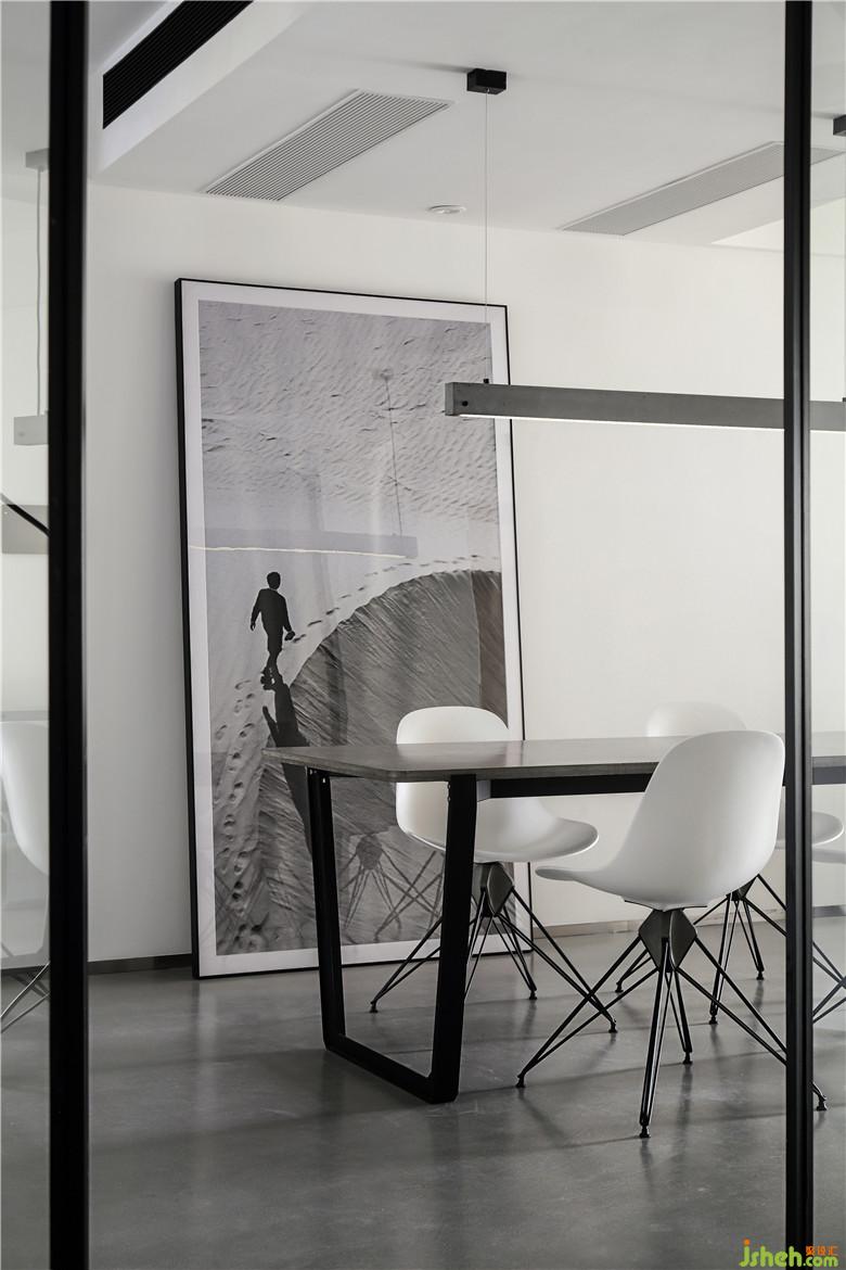 ▲光面水泥桌面被啞光鐵架支撐是不帶煙火氣的餐桌,伊姆斯餐椅凝固出現(xiàn)代都市感,椅腿的設(shè)計感給簡約的餐廳帶來線條的美感,是粗獷意味的細致與氣質(zhì)的混搭。業(yè)主自己拍攝的大幅照片,倚在白墻上,是十分具有個人氣質(zhì)的裝飾物。