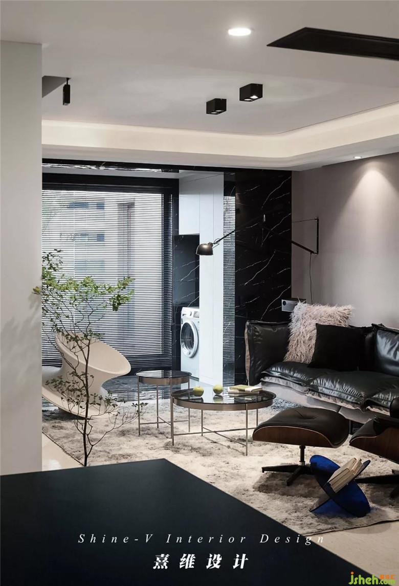 丹麥Bang&Olufsen音箱與Magis的陀螺椅,一黑一白,也是整個空間改造后所遵循的主要配色,分明又飽含張力,區(qū)別于傳統(tǒng)家具外型設計的轉折,保證功能之下,又額外為家中增加的趣味。封閉之后的陽臺,拆除移門與客廳連通起來,在黑色瓷磚包圍的陽臺中,白色的陽臺柜增加了儲物空間,小小的功能分區(qū)配色也與整體空間呼應。