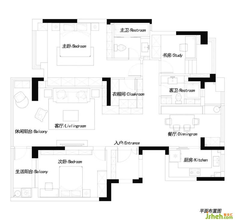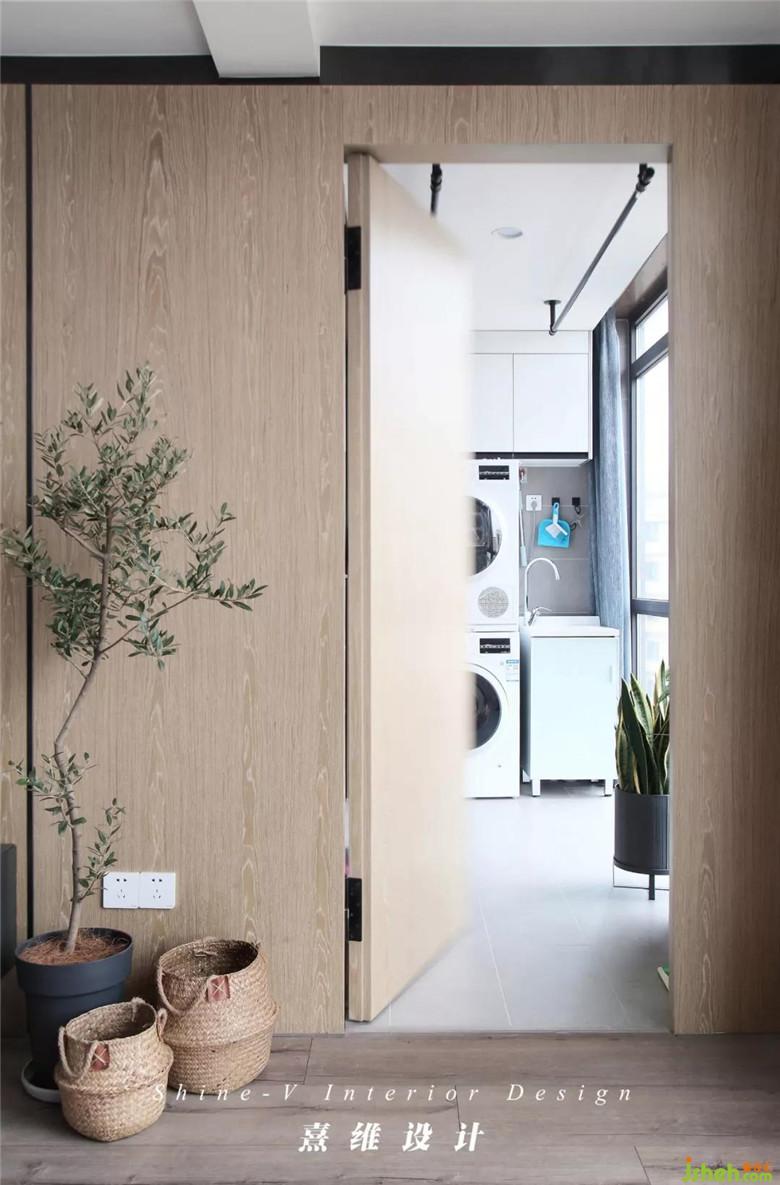 ▲木飾面綿延至陽臺(tái)處,以隱形門將陽臺(tái)分割為生活陽臺(tái)與休閑陽臺(tái)。