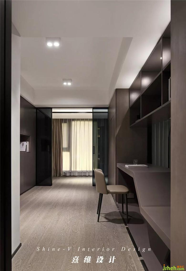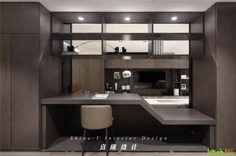 ▲書房是緊挨著入戶一側(cè)的細(xì)長(zhǎng)空間,裝修公司將書房打造成家中工作與收納兼顧的綜合空間,到頂?shù)墓褡咏Y(jié)合書桌配上玻璃隔斷與移門來(lái)替代被拆掉的墻體,節(jié)省了空間補(bǔ)充收納部分。書桌上方開放的格子柜,盡可能讓玻璃前對(duì)著客廳的位置最大程度的通透。