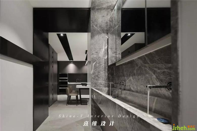 ▲起居空間與居住空間走道位置的重新規(guī)劃,讓客衛(wèi)干濕分離得以完全實現(xiàn),干區(qū)被調(diào)整到一面承重墻的小夾角中,客衛(wèi)位置的微調(diào)依然緊鄰兒童房,又變得更方便起居空間使用。