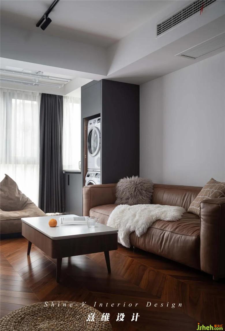▲長(zhǎng)坐深的沙發(fā)有著與豐厚外表相匹配的舒適度,易于撫慰日常奔波后的身體。陽(yáng)臺(tái)柜選擇L型,引更多光線入室,不搶眼的灰色柜體安心居于室內(nèi)一隅,做一個(gè)“有用”的配角。