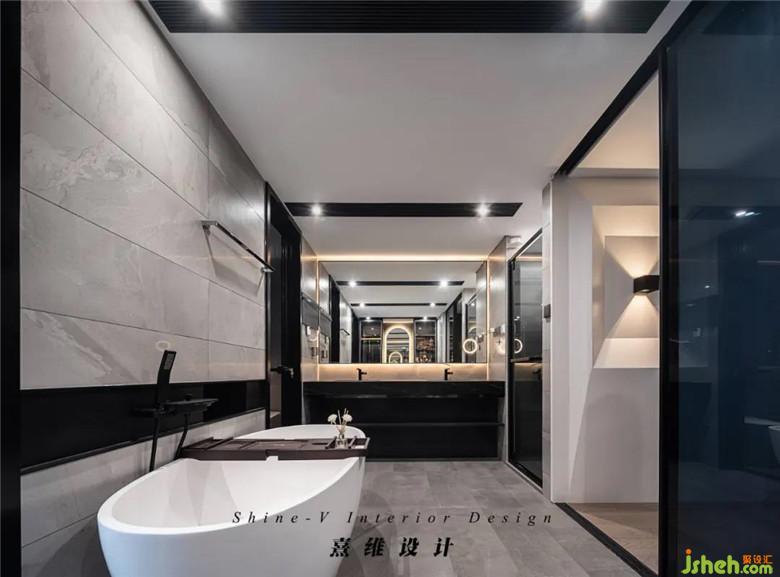 ▲裝修公司將原主衛(wèi)空間與鄰近的零碎小房間整合在一起,成為主臥套房的一部分。由于補(bǔ)充了足夠的空間,功能性得到極優(yōu)越的提升,浴缸放在中央,干區(qū)與梳妝臺(tái)分布在兩端,衣帽間、馬桶、淋浴間獨(dú)立于三個(gè)角落??臻g沒有分毫浪費(fèi),模塊之間相互關(guān)聯(lián)又互不打擾,在一起充分回應(yīng)使用者的需求。