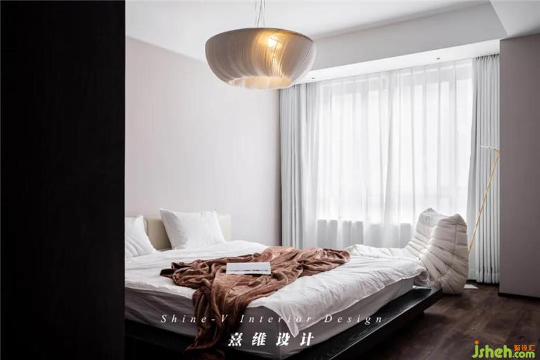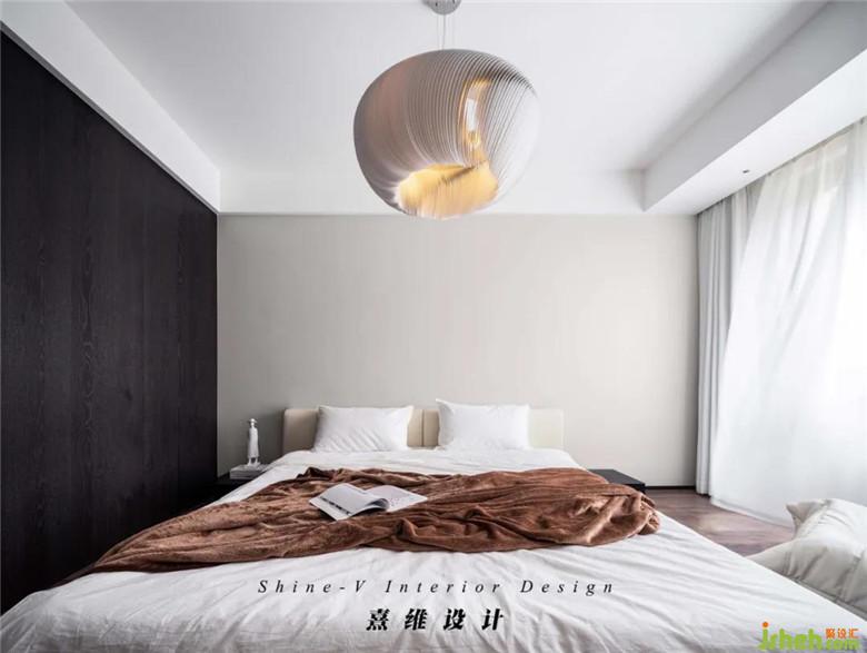 ▲低彩度的裸色墻布搭配一面深色的木飾面,被光照射著,細(xì)膩紋理與光滑表面的明暗轉(zhuǎn)換將空間多面向的層次盡致刻畫出來。臥室的主燈以最柔和的色彩演繹最層巒細(xì)致的造型,豐富空間內(nèi)部的秩序感細(xì)節(jié),永遠(yuǎn)值得駐足值得停留。