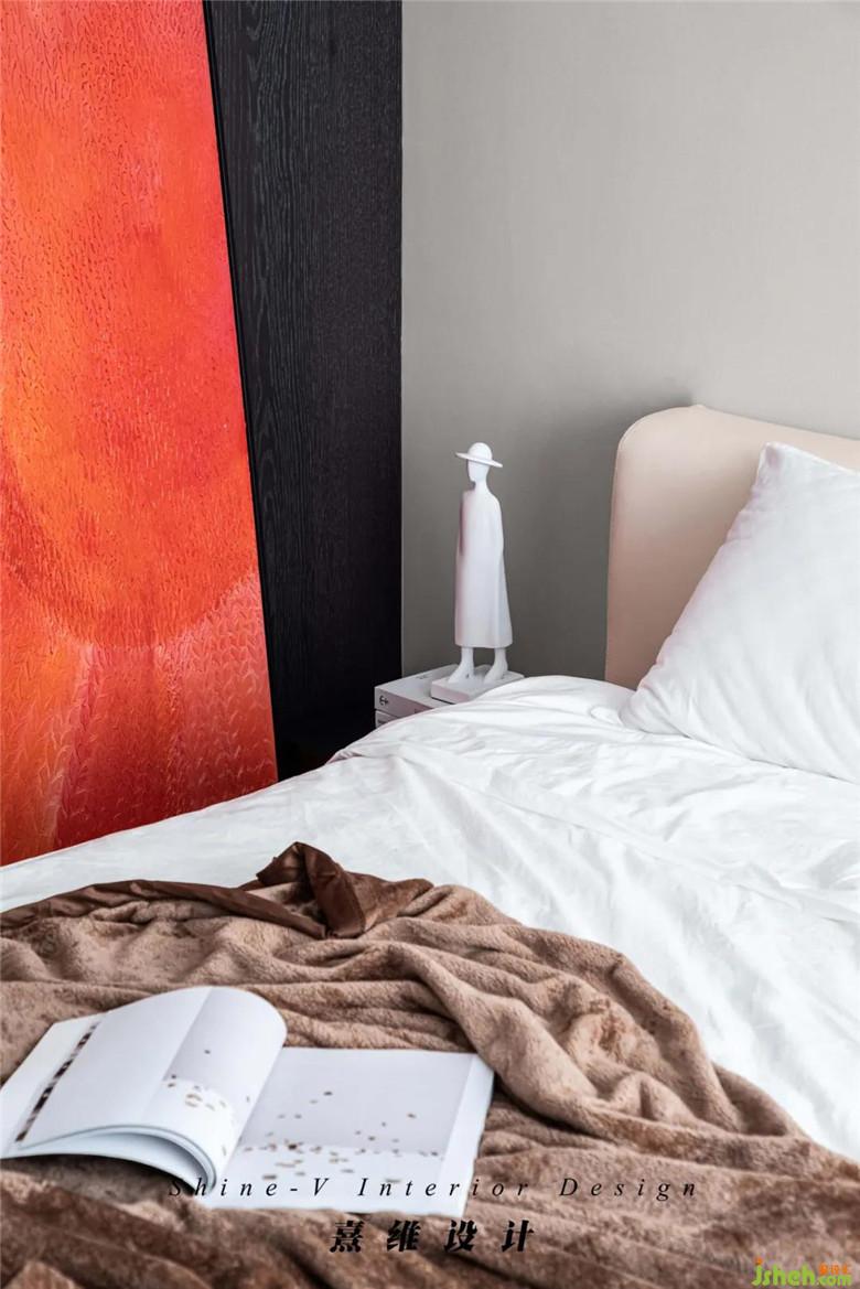▲一幅橙紅的裝飾畫是靜謐木色中的絕對主角,從無聲的映畫中跳脫出來,開啟熱情一瞬。