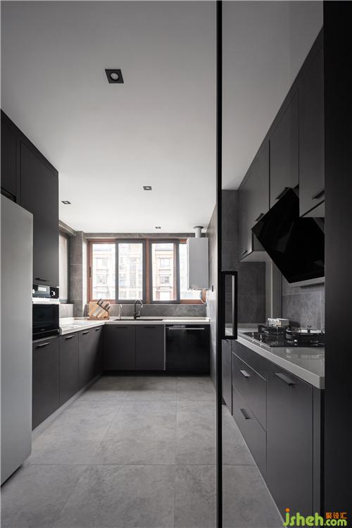 ▲納入陽臺(tái)后,廚房中電器高柜、地柜、吊柜都各得其所,操作范圍寬綽,收納空間充裕,窗戶不被遮擋分毫,良好的采光與開闊感在廚房也可盡現(xiàn)。