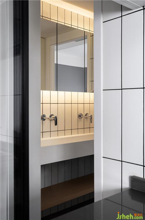 ▲裝修設(shè)計為了更貼近家中人口的需要,衛(wèi)生間功能做了干濕分割,干區(qū)獨(dú)立出來嵌入從主臥中分割出的路徑邊緣,距離餐廚、臥室都很近。亞克力一體式臺盆,用足夠的長度補(bǔ)充被壓縮的寬度,適合多人同時使用。