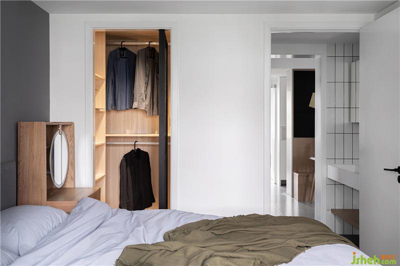 ▲從主臥的整面白色衣柜中破出兩層開放的小格,露出原木色內(nèi)里,裝修設(shè)計在有限的空間內(nèi)功能交織組合,實(shí)現(xiàn)形式被準(zhǔn)備的更多樣,光斜著灑落,個人主義渺小而溫暖,卻是有關(guān)家的具象表達(dá)。
