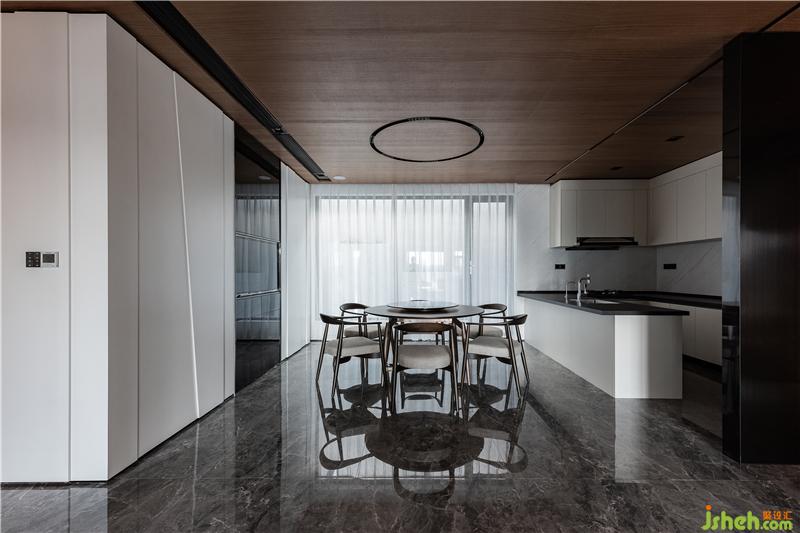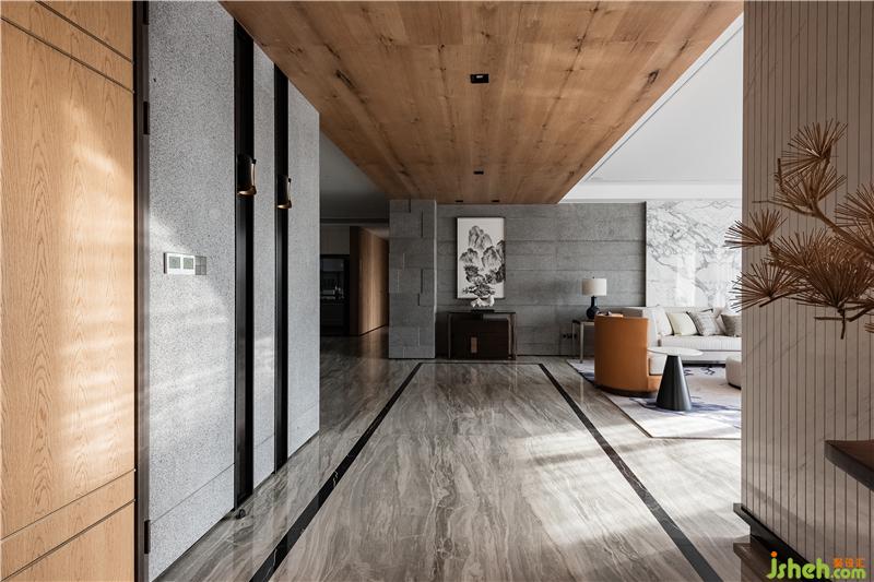 3、人文禪意:以寫意為理想,禪意為主題,收放自如地詮釋了東方精髓,演繹成這隅空間的妙筆。通過材質的對比與取舍,營造自然、沉穩(wěn)、溫潤質樸的淺淺禪意。明亮的白,平和的灰,溫潤的木飾面貫穿整個空間,別致的燈具位空間畫龍點睛。木飾天花與灰花崗巖、大理石相結合,給人以沉穩(wěn)、寧靜的自然韻味。讓豐富的建材帶出空間層次,有別于印象中偏內斂的禪風意象。偶爾點綴一些色彩,為整個空間帶來溫度與活力。無處不散發(fā)著尋求本真、淡然回歸的生活態(tài)度。