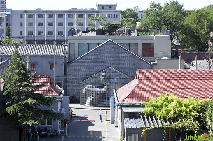 至夜間,以胡同里的人民美術(shù)印刷廠為源點(diǎn)鏡像拉伸投影,便形成新的建筑空間,設(shè)計(jì)師王大泉在保留局部原有結(jié)構(gòu)上疊加新的結(jié)構(gòu)次元,使新老建筑體有機(jī)融合,回歸人文環(huán)境,并與自然相鏈接,城市與建筑便得以為之延續(xù)。