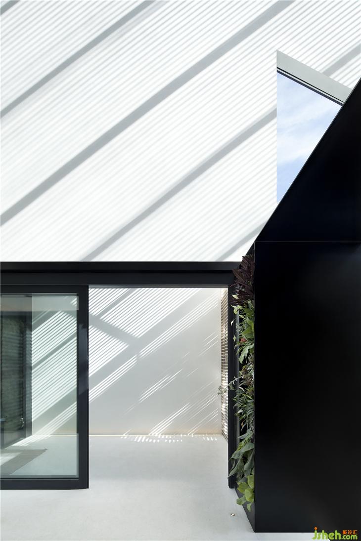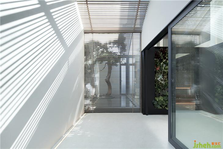 因入口朝北,很難有日照進(jìn)入,為了將自然光線有效的導(dǎo)入到室內(nèi),東西朝向的外立面上做了濾光處理,將日光映射在留白的墻面上,帶動(dòng)空間韻律,形成新的設(shè)計(jì)語(yǔ)言,光影流轉(zhuǎn),變化萬(wàn)千。