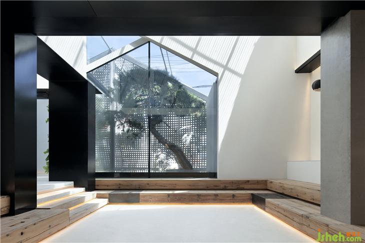 休憩區(qū)既有現(xiàn)代的黑、白色的強(qiáng)烈對(duì)比,又有木質(zhì)的清新質(zhì)樸。設(shè)計(jì)師將不同元素、不同時(shí)代相融相生,重新詮釋歷史遺留的古韻。