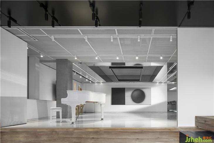 一樓為美術(shù)館,除此之外,還包括會(huì)客休憩區(qū),吧臺(tái)區(qū)和辦公區(qū),層層遞進(jìn)。