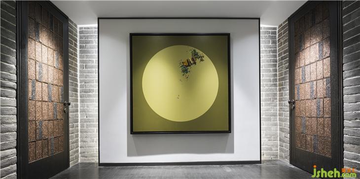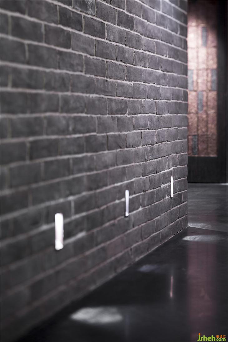 走廊蜿蜒綿長,途徑日式枯山水小景,立于一隅,不覺枯味,普洱茶磚與雕刻版相銜接共同構(gòu)成一扇門,雖處于走廊之中,移步易景間,回味無窮。