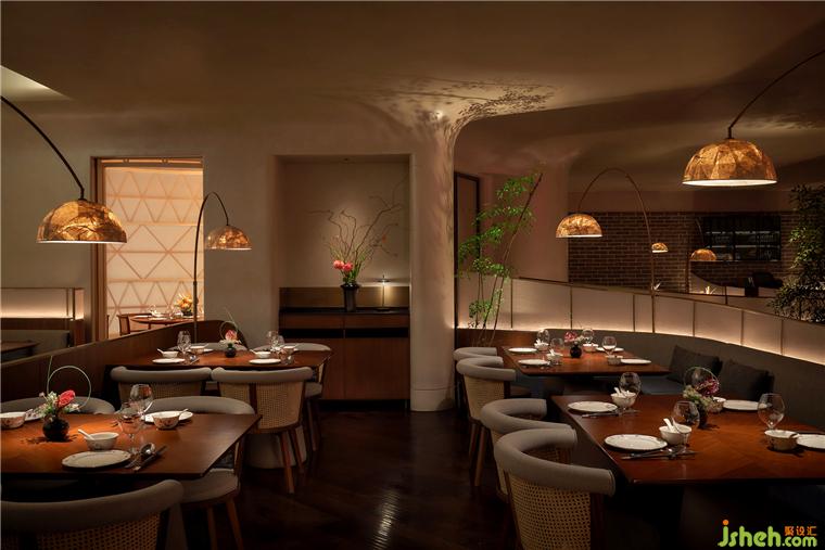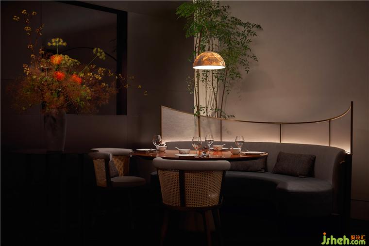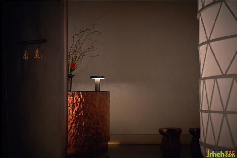 2022年3月,老牌米其林餐廳新店南麓·薈館結(jié)束跨年疫情蟄伏,陸家嘴國金中心商場通明的商鋪間,半只燈籠被薄霧所隱,玉色透光,入口浮動。TANZO天作王大泉歷時5個月,完成內(nèi)部空間設計。
