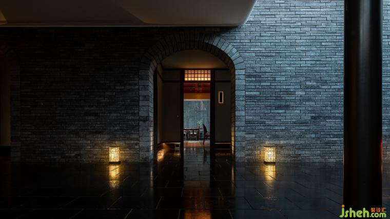 空間是在一個(gè)現(xiàn)代性的簡潔構(gòu)成下層層豐富遞進(jìn)的,條形灰磚與簡素的肌理漆在立面鋪陳延展,在垂直方向的天花盡頭彎折隱入天光,高度設(shè)計(jì)和弧面控制減少了對封閉邊界的感知,而它的意向既是安徽的也是北京的,作為空間敘事的大背景恒定而有力。