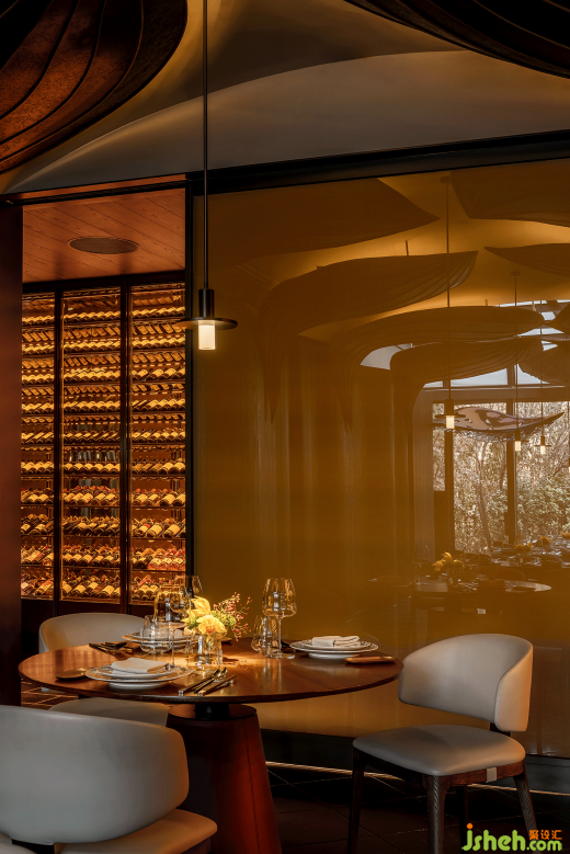 The restaurant is composed of multiple groups of spaces, each with a comfortable scale and a rich functional dimension, progressively nested within one another. The experience is fluid, resembling a meal that flows smoothly like a feast of effortless elegance.
