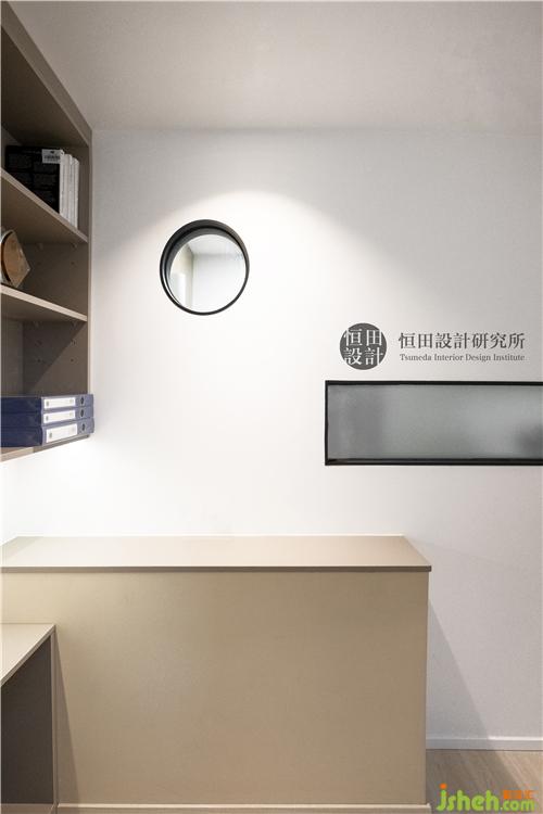 洗手間是唯一一處沒有自然光直射的區(qū)域。大面積采用亮色系,避免了暗衛(wèi)帶來的視覺壓抑感。