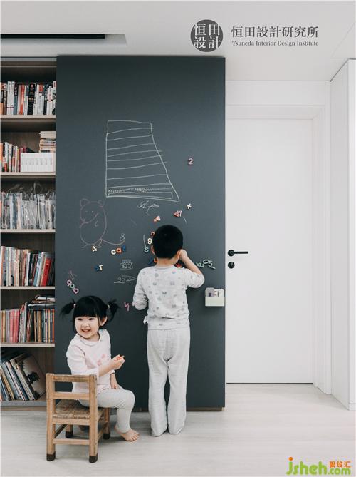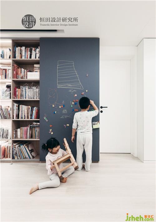 推拉門采用“黑板貼”材質(zhì),方便小朋友寫寫畫畫