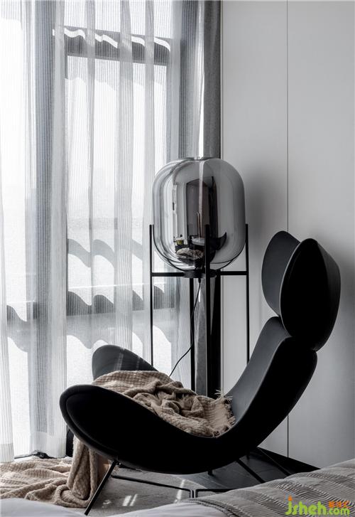 女主人妹妹的房間,黑色躺椅搭配駝色毛毯