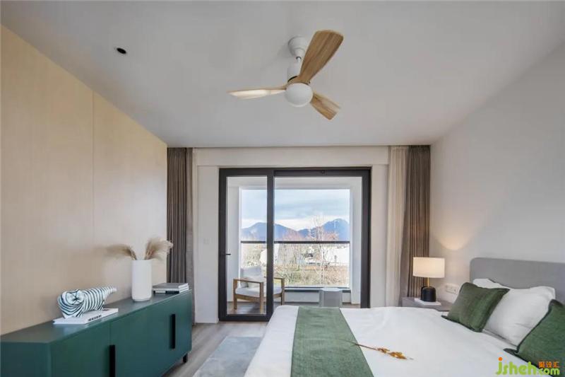 隨處可見的風(fēng)扇燈既是有趣的照明也是讓空氣流通的好物。窗門緊閉下打開空調(diào)和風(fēng)扇燈,旋轉(zhuǎn)的風(fēng)扇燈能夠?qū)⒖諝獯蛏?,涼意均勻散布;樣板房設(shè)計(jì)打開門窗后,又能與麗江的風(fēng)協(xié)同,讓麗江的靈動(dòng)隨風(fēng)穿堂而過。