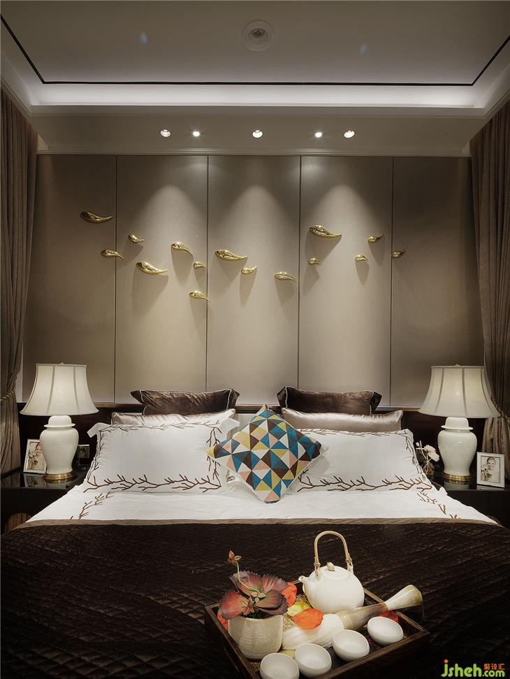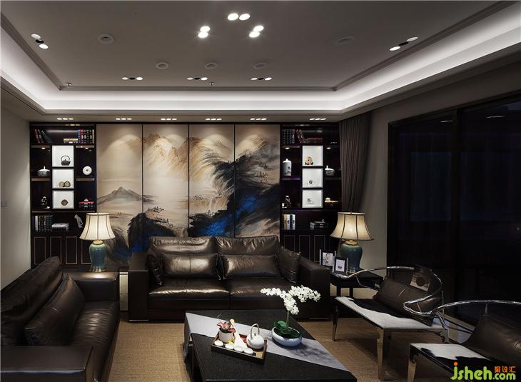新古典藝術(shù)氛圍的家居空間,用一副張大千的山水畫(huà)做為客廳的背景墻,配以暖黃色的柔光,使整個(gè)空間的藝術(shù)氣息在不經(jīng)意間流露。同時(shí),燈光的明暗節(jié)奏又使整個(gè)空間更顯豎式。整個(gè)家居體驗(yàn)區(qū)除了溫馨、高檔之外,又多了一份莊重、沉穩(wěn)的生活氣息。