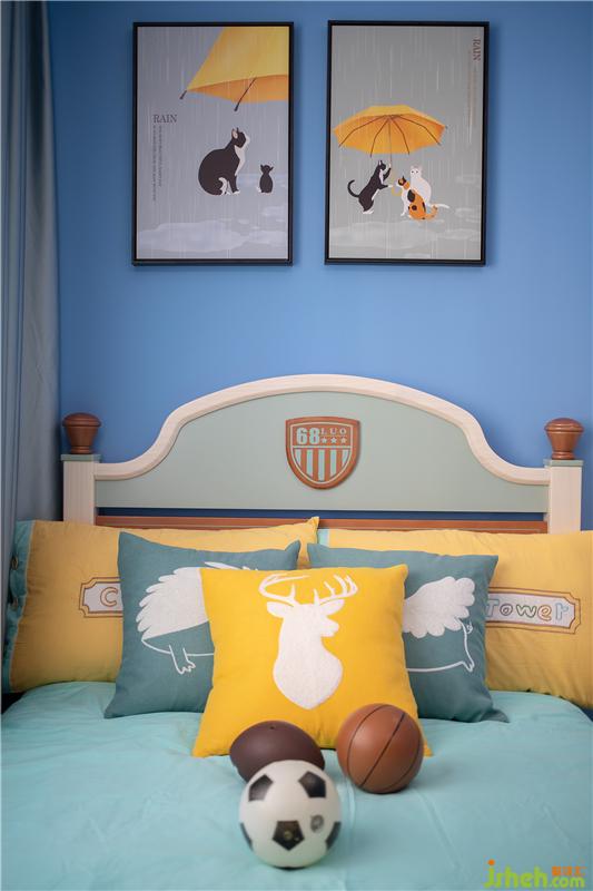 藍(lán)色,與純潔無(wú)比的童心最是相襯。室內(nèi)設(shè)計(jì)師以此為空間基調(diào),藍(lán)白呼應(yīng),干脆利落,正是現(xiàn)代白領(lǐng)父母對(duì)體面舒適的極致追求。加之暖黃色的床品、童畫(huà)多處點(diǎn)綴,設(shè)計(jì)之余更顯活力,創(chuàng)造出寶貝專(zhuān)屬的成長(zhǎng)空間。