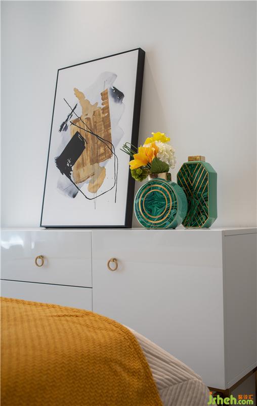 臥室布置淺色棉麻織物和乳白色系家具來制造舒適平和的觀感,燈飾與飾物搭配更顯簡潔輕致,整體呈現(xiàn)出一種舒適自然、安恬靜默的休憩氛圍,好似清泉流水,緩緩而歌,待亥子時刻,夜深人入定,山河夢間。