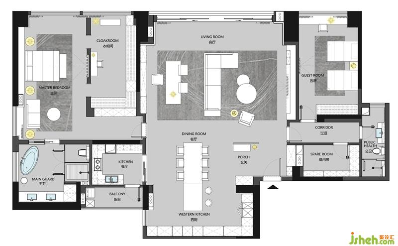 惠州家居設(shè)計采用明朗的線條,將空間進(jìn)行了合理的分隔。面對擾嚷的都市生活,一處能讓心靈沉淀的生活空間,是業(yè)主心中的一份渴望,也是該方案中所體現(xiàn)的主要思想。因此,全開放式大廳設(shè)計給人以通透之感,避免視覺給人帶來的壓迫感,可緩解業(yè)主工作一天的疲憊。