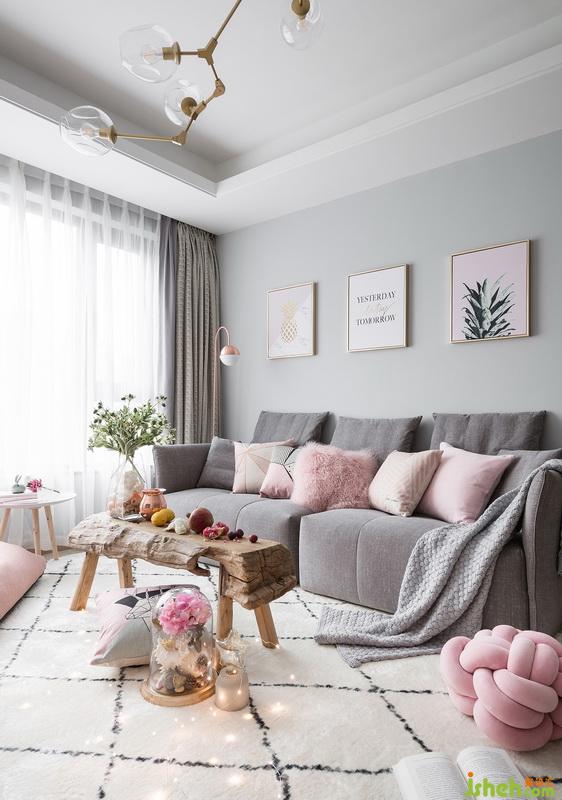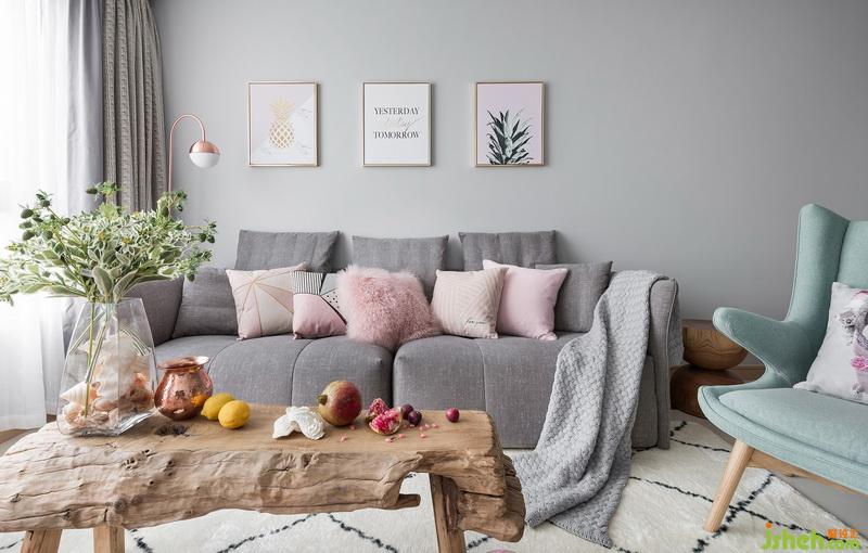 單身公寓的裝修風(fēng)格選擇起來(lái)很有局限性,面積太小,過(guò)于繁雜的風(fēng)格很難體現(xiàn),根據(jù)對(duì)業(yè)主自身氣質(zhì)的印象以及具體要求,把設(shè)計(jì)風(fēng)格定位在了簡(jiǎn)潔清爽的清新北歐風(fēng),并在此基礎(chǔ)上呈現(xiàn)了一個(gè)充滿少女感的粉色故事,滿足了業(yè)主純真的公主夢(mèng),在自然、流暢的空間中搭配以粉色為主的清新夢(mèng)幻的色彩,營(yíng)造了一方溫馨而恬靜的少女小天地。粉色,甜美而嬌艷,柔情又純真,而高級(jí)灰的低調(diào)內(nèi)斂,與悅動(dòng)?jì)善G的粉色不期而遇,好比交響樂(lè)高低音的完美融合,空間層次更加豐富。為了打造一個(gè)不失優(yōu)雅又不失溫柔的女性空間,我們室內(nèi)設(shè)計(jì)師以高級(jí)灰色作為背景,裝飾同色窗簾,以粉色系的家居飾品為主,配以簡(jiǎn)潔的幾何及條紋圖案,增添現(xiàn)代都市感。邊桌條凳等小家具裝飾選擇原木色,燈具和部分飾品選擇有線條美感或者玫瑰金色相結(jié)合的,提升空間氣度與質(zhì)感。