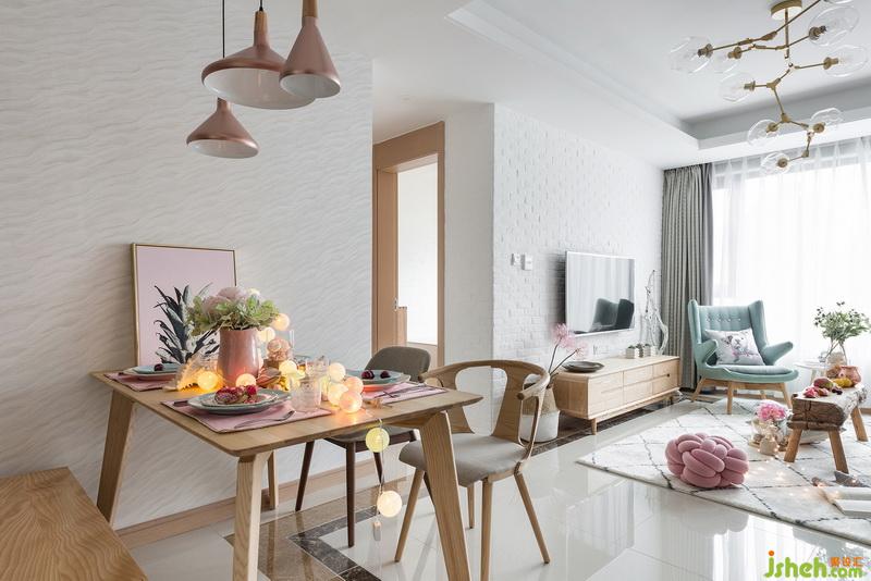 餐桌條凳等小家具裝飾選擇原木色,燈具和部分飾品選擇有線條美感或者玫瑰金色相結(jié)合的,提升空間氣度和質(zhì)感。