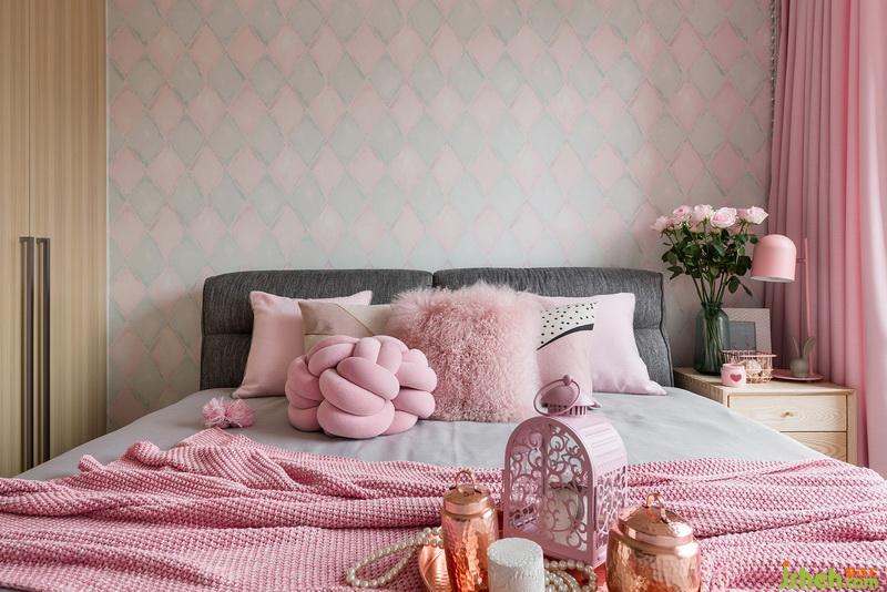 灰色和粉色配搭在一起,有一種優(yōu)雅的感覺,而又不失少女心,粉色系家居將甜美和青春感融入生活和夢里。