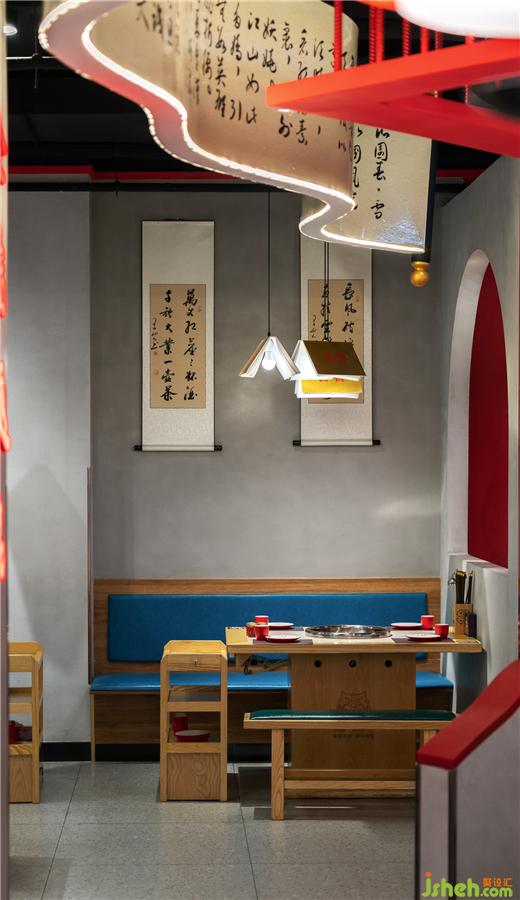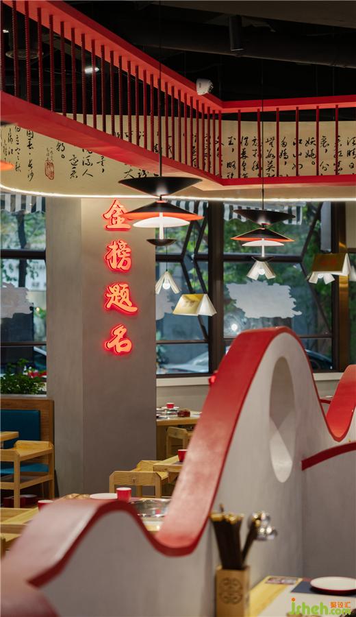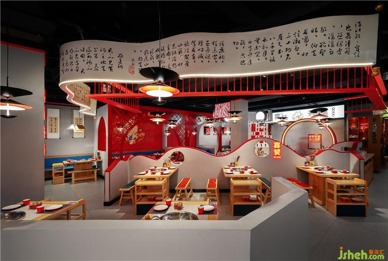 無論是視覺呈現(xiàn)上,還是實用便捷上,都有著無可比擬的競爭性,成都喜饕餐廳設計利用洞房花燭,喜從天降,久逢好友、金榜題名等大場景與火鍋用餐區(qū)相結合。
