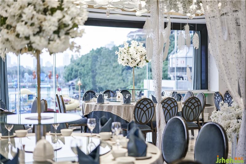 在婚宴廳,酒店選用大量純潔的白作為背景,配合藍(lán)的主旋律。窗外充沛的陽光,開闊的視野,綠蔭的樹木與室內(nèi)浪漫的鮮花相輔相成,仿佛輕靈的鳥兒都在為新人祝福。