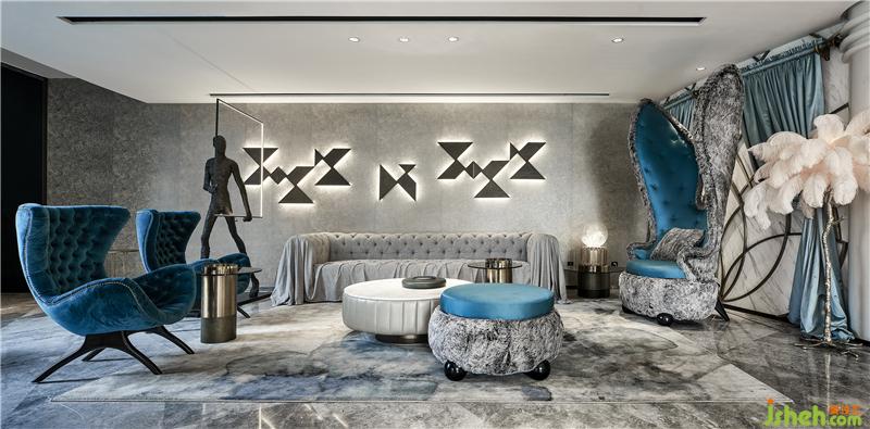 基于婚禮的基調(diào),酒店以靜謐而愜意的藍(lán)作為主旋律,營造一種浪漫的氛圍,同時(shí)對(duì)藍(lán)賦予不同層次的色調(diào)和飽和度,在感官上又能帶給我們獨(dú)特的視感。