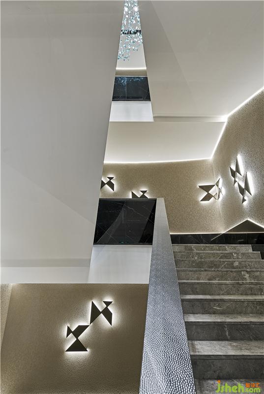 前廳的高度是設(shè)計(jì)的一個(gè)關(guān)注點(diǎn),由于本身的構(gòu)造問題,無法給予大堂充分的伸展空間,因此后期為了避免壓低原本尚不充足的空間,需要同時(shí)考慮燈飾方面的舒適程度。