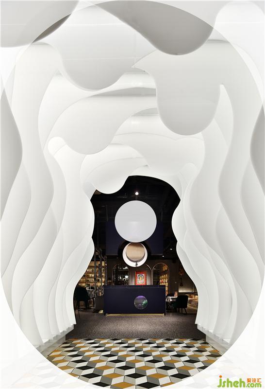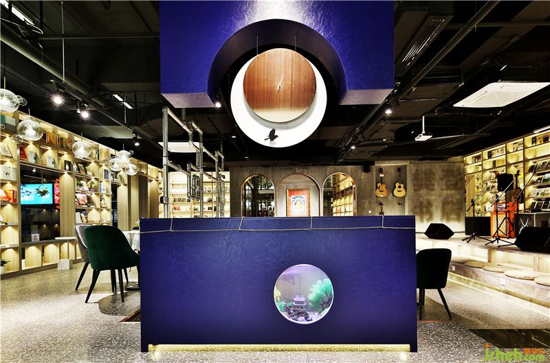 江西首家樊登書店、音樂綜合體在南昌盈石廣場驚艷亮相。書店經(jīng)營面積600平方米,目前陳列圖書2.5萬冊,集展演活動、咖啡品鑒、音樂教育、文創(chuàng)商品、圖書音像經(jīng)營板塊為一體的體驗式情景書局,書店空間設計上明亮、開闊,氛圍營造上優(yōu)雅、溫馨,充滿人文藝術(shù)氣質(zhì)的氛圍。進門結(jié)合音樂元素,將12把不同的吉他為元素演化的時光隧道,進門穿透的正對書籍也是引用古代裝幀書籍概念做成水吧操作暗柜,上面采用吉他空心圓形的概念做成動態(tài)時光裝置。