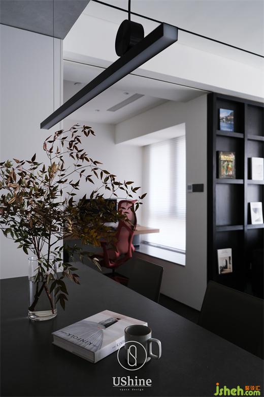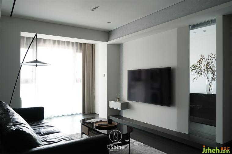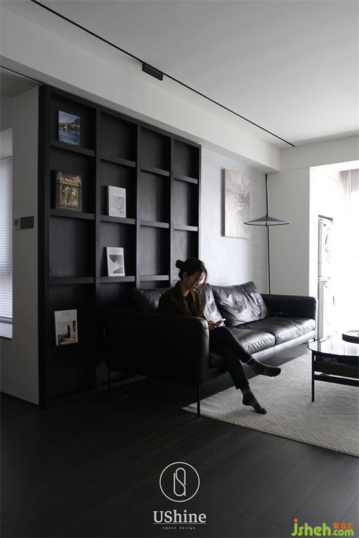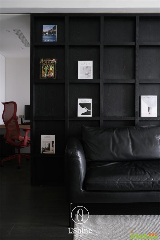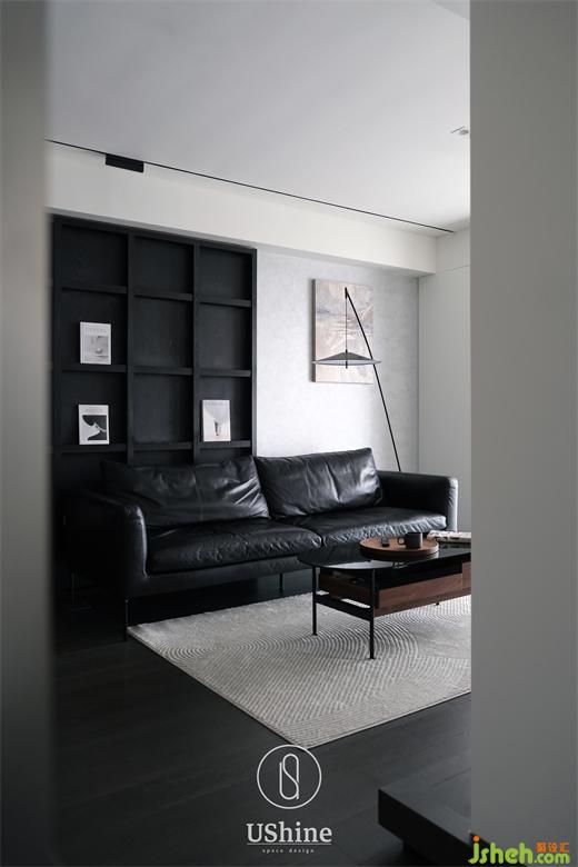 客廳采用冷調深色系,選用深色木質地板、砂巖瓷磚,搭配清水混凝土、不銹鋼材質,以及同色系的深色沙發(fā),凸顯紳士的居家質感。同時,冷調深色與白色的明暗對比,產(chǎn)生視覺后移的效果,深圳海納公館家裝設計以空間層次放大視覺感受。