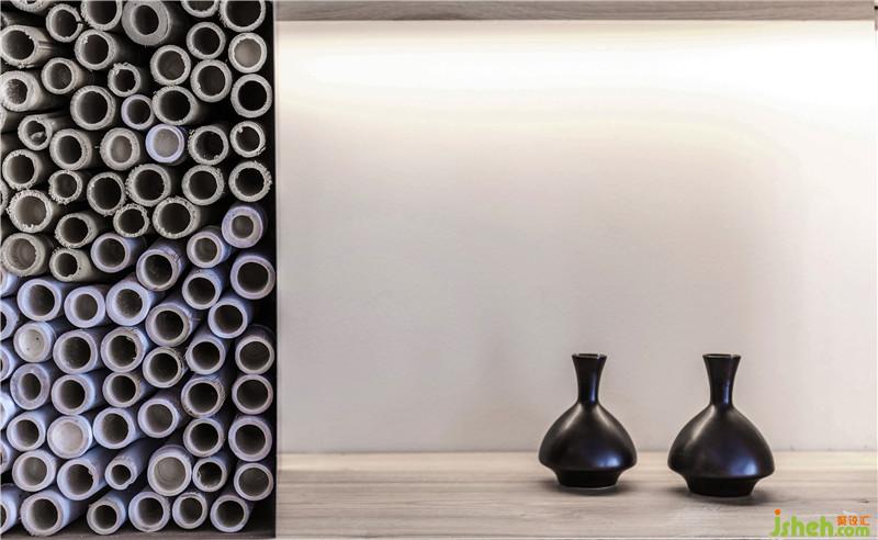 · 強(qiáng)調(diào)材料的自然特性,運(yùn)用將普通材質(zhì)的特性延展發(fā)揮到極致。質(zhì)樸的水泥漆,溫潤(rùn)的木飾面板,自然的竹子以及白色涂料。