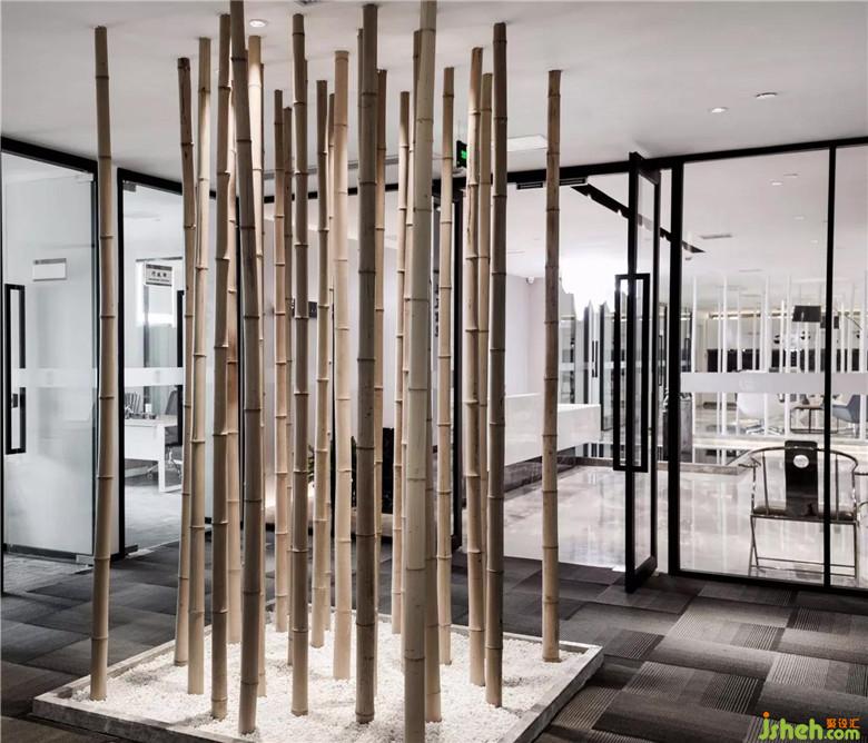 洽談區(qū)旁是白石子和泰山石鋪成的枯山水造景,同樣是現(xiàn)代風(fēng)格的家具與中式意境的結(jié)合,卻沒有一絲違和、突兀。