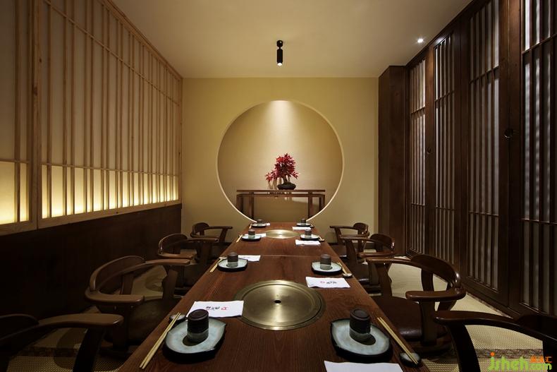 包間是靜藏與鬧世的一方天地。以月為門,方圓之間,窺得一方別致風(fēng)景。大面積留白,詮釋生活的哲學(xué)智慧。觥籌交錯(cuò)間,泯一壺清酒,可細(xì)細(xì)品味悠遠(yuǎn)的日式禪意。餐廳設(shè)計(jì)