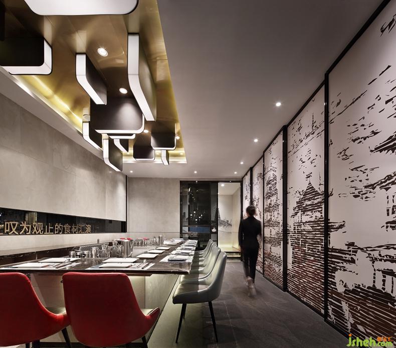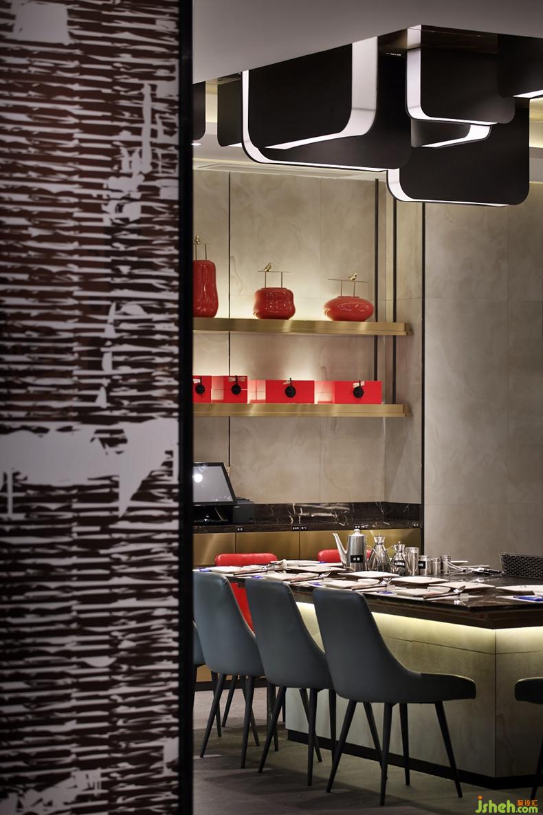 沁潤著淳古遺風(fēng)的紅,游刃有余地跳躍在沉穩(wěn)的黑白灰調(diào)中,使富有活力與現(xiàn)代感的東方氣質(zhì)氤氳開來。一抹流淌于山水掛畫中,勾畫絲綢之路“長河落日圓”的壯闊意境;一抹停駐于器物陳設(shè)上,熱情碰撞出千古韻長的典雅樂章......餐廳設(shè)計
