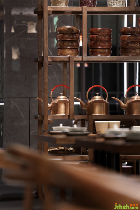油鹽醬醋茶,鍋碗瓢盆浮世過。對尋常百姓來說,食飽飲足,可比風(fēng)花雪月更撫慰人心。設(shè)計師擯棄過多刻意的裝飾,銅壺,瓦鍋,木碗,藤簍,靜雅登場,沉穩(wěn)中不乏生趣,靜默一首動人的俗世煙火詩。