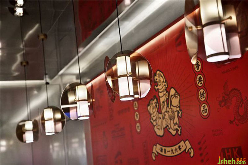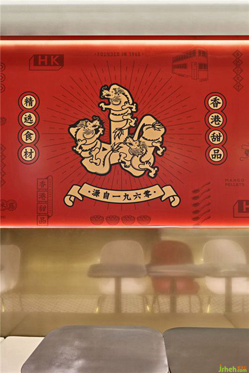 本案設(shè)計(jì)以傳承為依托,運(yùn)用簡潔明快的方式呈現(xiàn)新潮時尚的甜品文化。在許留山的空間演繹上,龍紋和朱砂紅的搭配,賦予了空間濃郁的文化氣質(zhì);