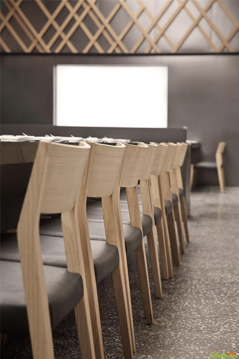 本案設(shè)計師追溯大漁鐵板燒的歷史,以灰、白、黑、木色等主色調(diào)營造出一個日式氛圍空間,給人時尚新潮、簡約素凈的用餐體驗。