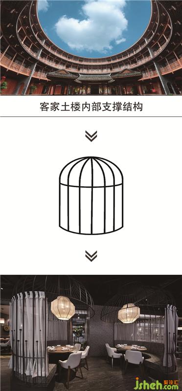 “遷移”和“融合”是客家文化中的兩大主題。餐廳設(shè)計(jì)
